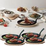 4er-Set Massive Profi Servierpfanne aus Gusseisen mit Holz-Untersetzer, 24 x ...