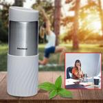 Preview: Doppelwandiger Thermobecher, 420 ml, hellgrau, hält Getränke stundenlang heiss oder kalt, auslaufsicher, robust & ideal für unterwegs
