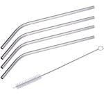 Edelstahl-Trinkhalme 4er Set - Wiederverwendbar & Spülmaschinenfest - Gebogene Form, Ø 6 x 215 mm inkl. Reinigungsbürste - Für Cocktails & Säfte
