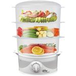 Funktionales Design: Das Gerät punktet mit seinem robusten Kunststoffgehäuse und seiner Funktionalität. Insgesamt stehen Ihnen neun Liter Fassungsvolumen und drei stapelbare Garbehälter zur Verfügung. Damit ist Ihr neuer Dampfgarer für Familienfeste und Vereinsfeiern geradezu prädestiniert. Eine Wasserstandsanzeige und der 60-Minuten-Timer erleichtern den Betrieb.