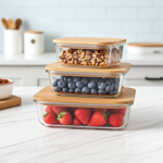 Hochwertige Vorratsdosen mit Deckel, rechteckig, Glas/Bambus, 3 Grössen: Vorr...