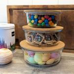 Preview: Hochwertige Vorratsdosen mit Deckel, rund, Glas/Bambus, 3 Grössen: Vorratsgläser für Aromaschutz & eine stilvolle Ordnung