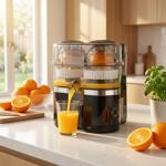 Maximale Zeitersparnis - Das innovative Doppel-Design presst zwei Fruchthälften gleichzeitig mit effizienten 15.000 U/min