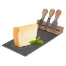 Stilvolle Präsentation von Käse: Brett aus Holz mit Schiefer-Platte und 3 Messern