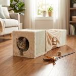 - Katzenspiel- und Kratztunnel - Sisal-Kratzwürfel & Stofftunnel (29x29x106cm) - Fördert Entdeckergeist
