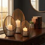- Kerzenhalter 3er-Set Metall - Ovale Windlichter für Teelichter & Duftkerzen - Modernes Schwarz-Gold-Design für optische Highlights