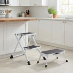 Praktisches Set aus 2-Stufen Küchenleiter und Tritthocker; die perfekte Hilfe für alle Arbeiten in der Höhe.