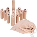 - 13-tlg. Nummern Kubb-Spiel aus hochwertigem Kiefernholz - ideal für Outdoor-Spass, für Jung und Alt geeignet.