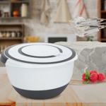 Preview: Praktische 5L Rührschüssel mit Deckel: Rutschfeste Küchenschüssel (weiss/schwarz) mit Ausgiesser & Griff für sauberes Arbeiten