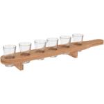Schnapsbrett aus Bambus für 6 Schnapsgläser - Robust & langlebig - 40ml je Glas - Servierbrett mit Griff - Perfekt für Party, Bar, Geburtstag - 45x6x6 cm
