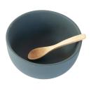 - Tapas Set Keramik-Bambus - Edle Präsentation von Beilagen & Snacks - Matt Schwarz/Braun Schale mit Löffel 14x14x7cm