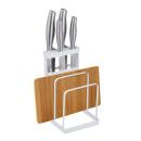 Robuste, de nombreuses possibilités d‘utilisation et tout à portée de main : Le support pour planches à découper et couteaux est fabriqué en métal et sa couleur blanche attire l‘attention. Si nécessaire, vous pouvez même ranger des couvercles de casseroles ou des assiettes dans le support. Avec cet organisateur de cuisine, vous avez tous les ustensiles de cuisine importants organisés de manière pratique et toujours à portée de main !