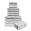 Unaccessorio indispensabile in bagno: soffice, assorbente e semplicemente lenitivo sulla pelle - non c’è alternativa paragonabile a questo set di asciugamani da 16 pezzi in 100% cotone per la routine di lavaggio quotidiana! I sottili lembi di spugna detergono e asciugano la pelle con un leggero effetto peeling, che dona al corpo una sensazione di pelle setosa e al viso un colorito roseo. Puro benessere per la vostra pelle!