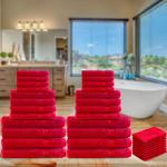 Preview: set di asciugamani in spugna da 32 pezzi, 8 asciugamani per ospiti, asciugamani per mani, asciugamani da bagno e flanelle, rosso